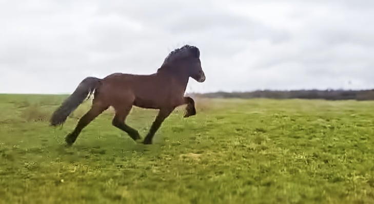 Aktuell überzeugt er mit geschwungenem, taktklaren Trab und immer wieder fließenden Töltmomenten. Kein Wunder bei dieser Genetik: Sowohl seine elitegeprüfte Mutter als auch sein elitegeprüfter Vater wurden jeweils mit 9,5 im Tölt bewertet – beste Voraussetzungen also für herausragende Gangeigenschaften.